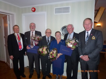 Arve Magnussen, Terje Olav Austerheim og John Einar Johnson mottok sine velfortjente priser for sitt virke i Rotary og Sissel Apelland ble hedret for sin mangeårige innsats på Stokke stasjon.